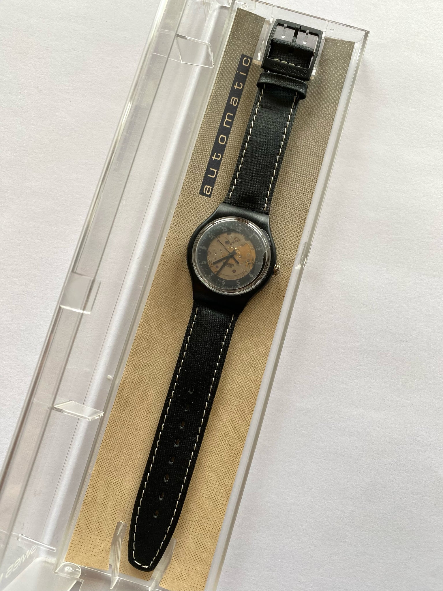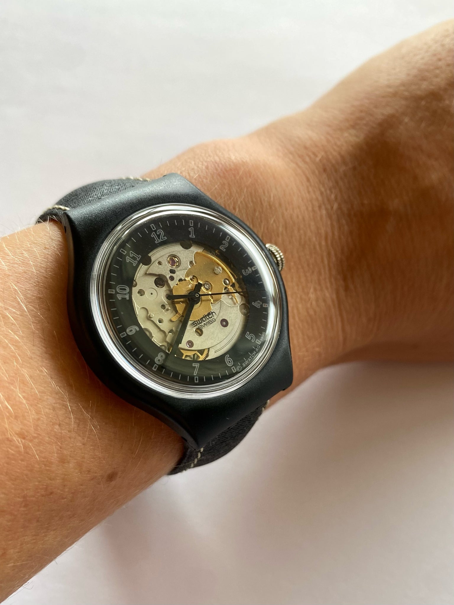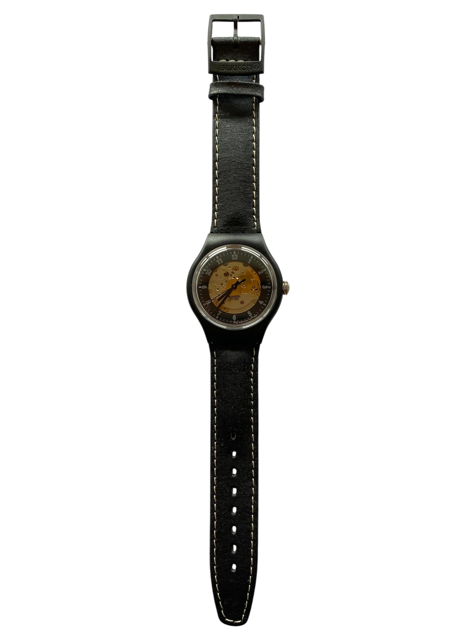 Midnight mystery wrapped in style: with “Imperial Night,” you get an all-black hypnotic ring around its skeleton dial, letting you spy on the automatic movement’s heartbeat. The black strap (textile over leather) hugs the wrist like a shadow cloak, while every little gear glimmers in contrast — a watch that’s less about telling time, more about owning the night.