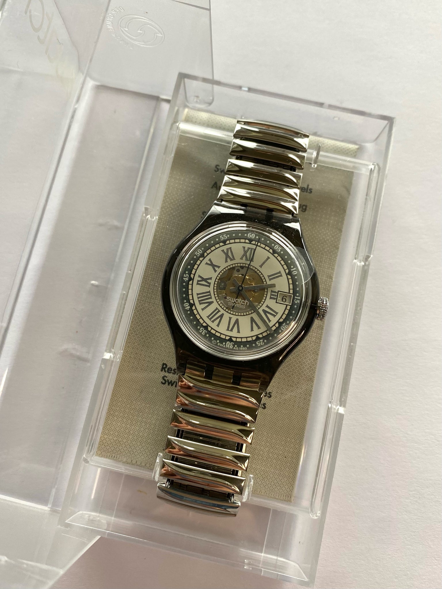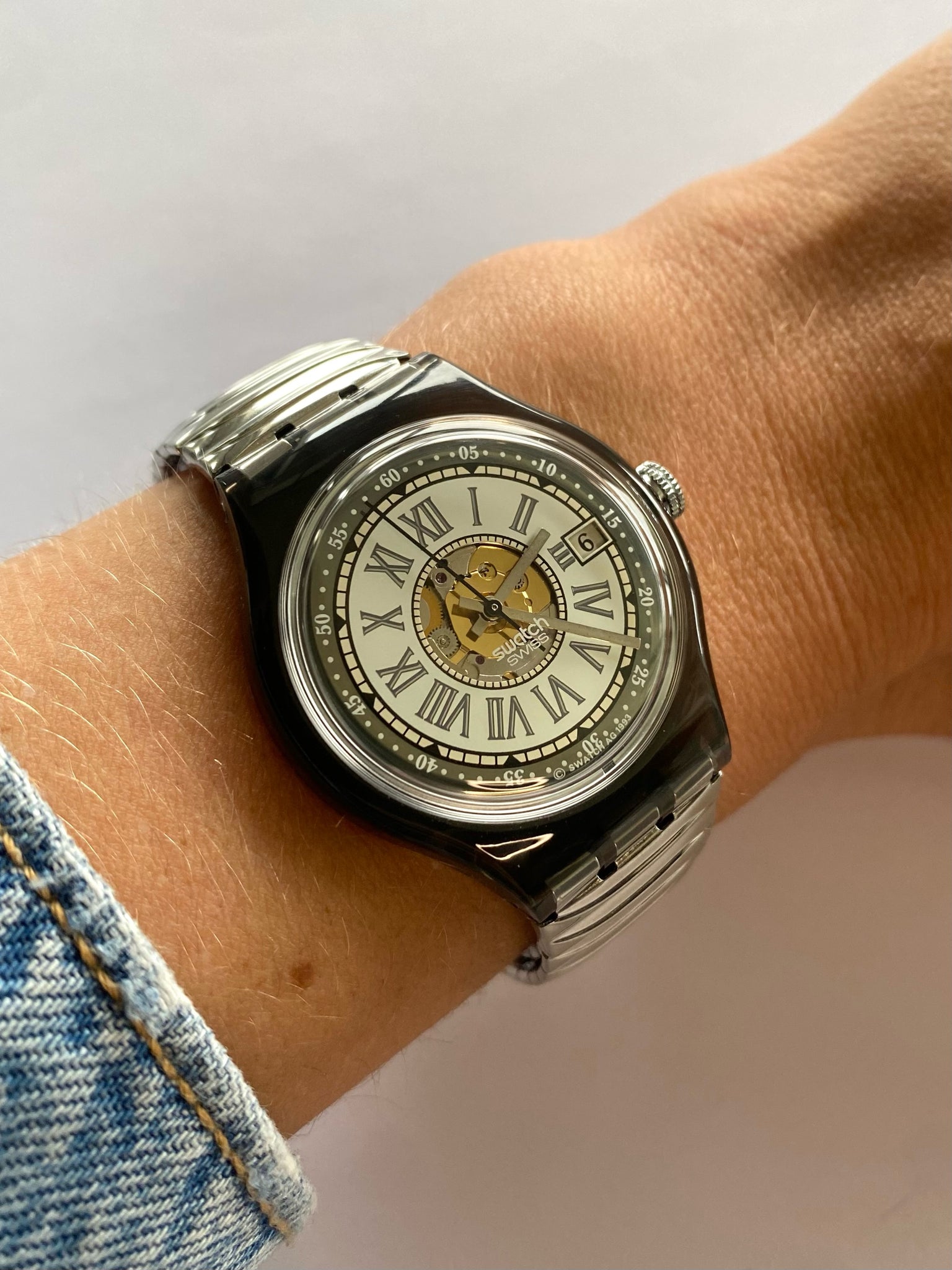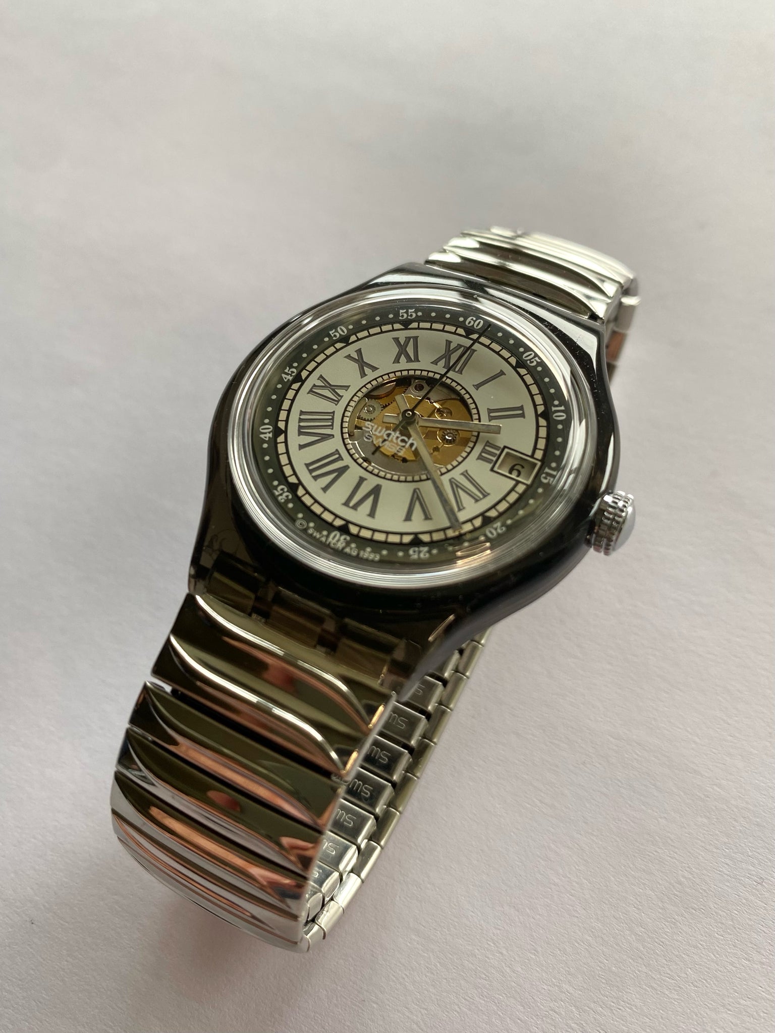 A silver shimmer you can wear! Romand-numeral dial, date window, and a stylish stretch-metal bracelet make Charms SAM401 glam and practical. Automatic vintage classic with 3-bar water resistance.