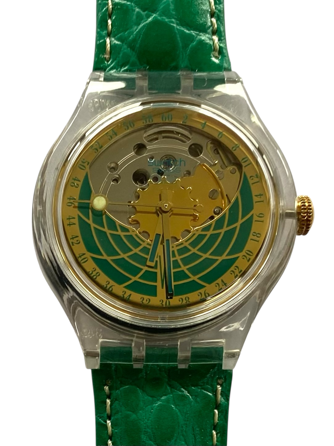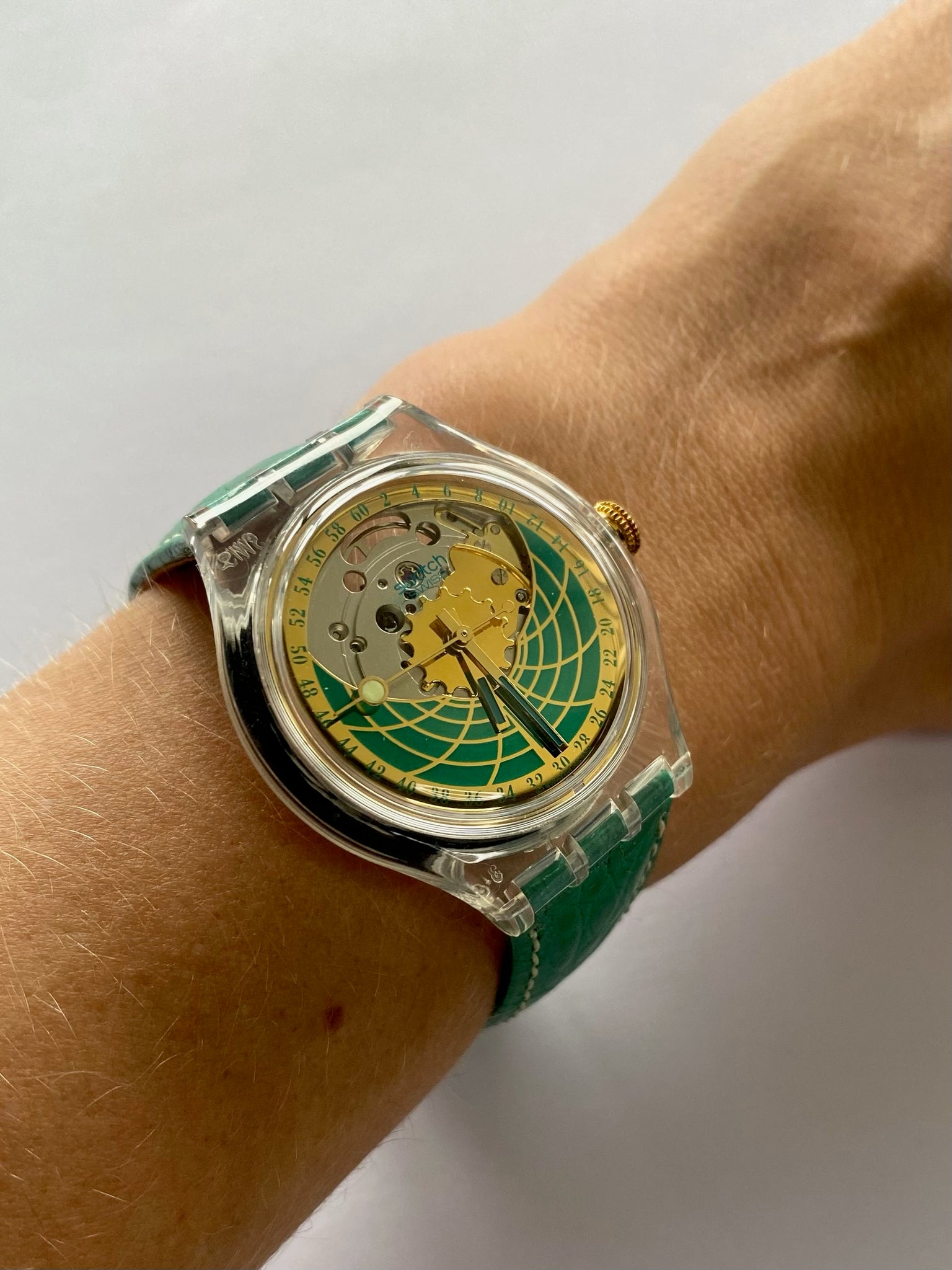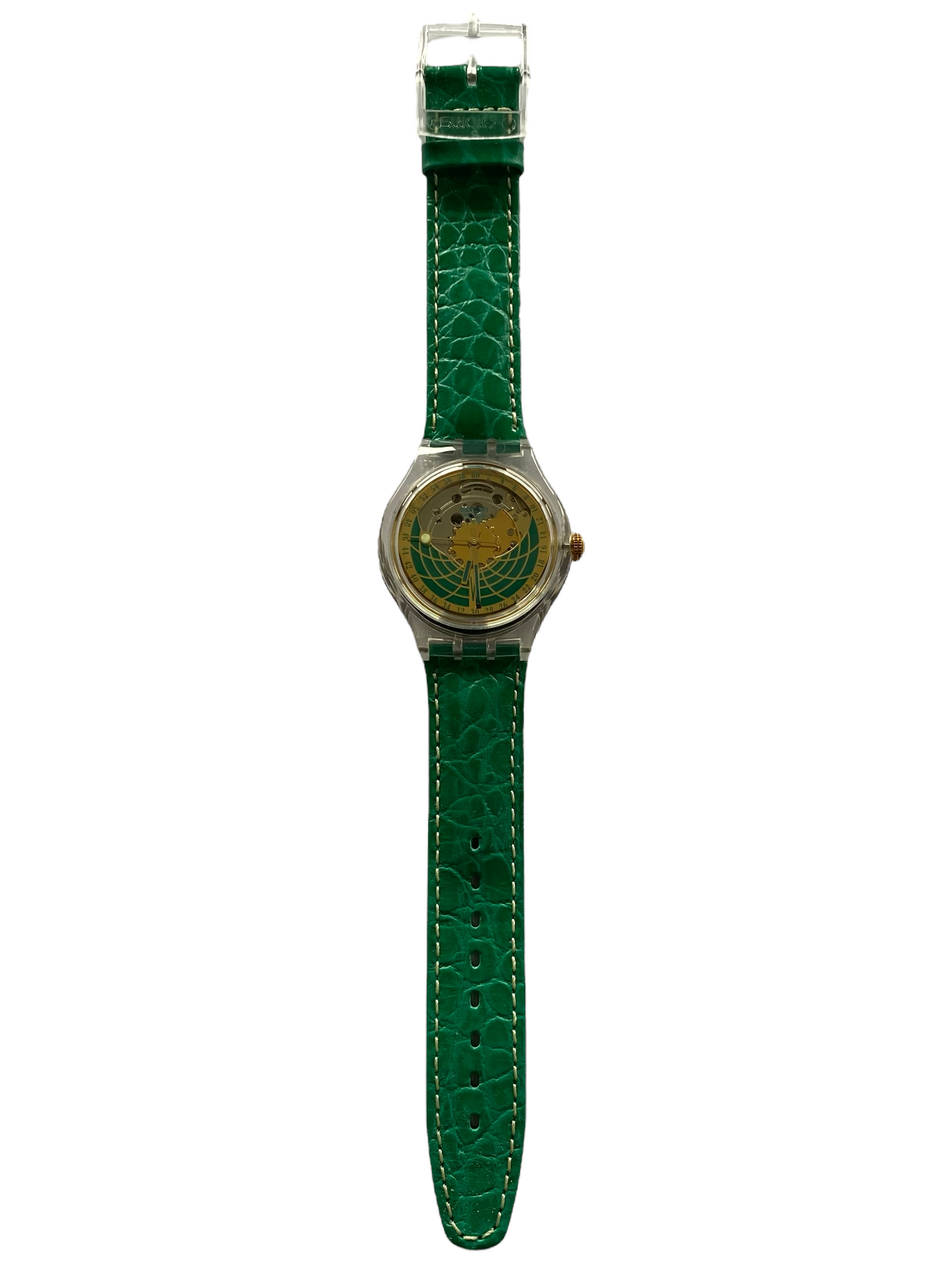 Green, gleaming, and full of life — the Ramarro lets you peek inside its 23-jewel automatic movement through a playful skeletonized dial. With matching green leather strap and gold accents, it’s mechanical fun you can wear every day.